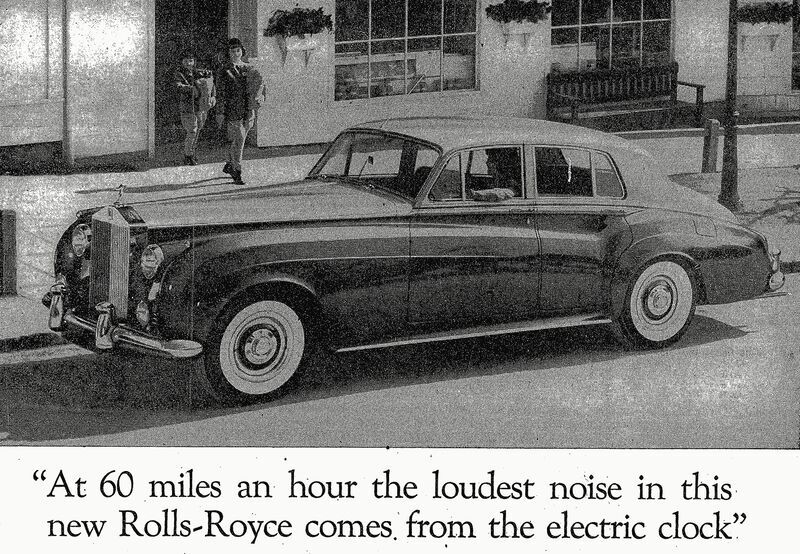“At 60 miles an hour, the loudest noise in this new Rolls-Royce comes from the electric clock.”