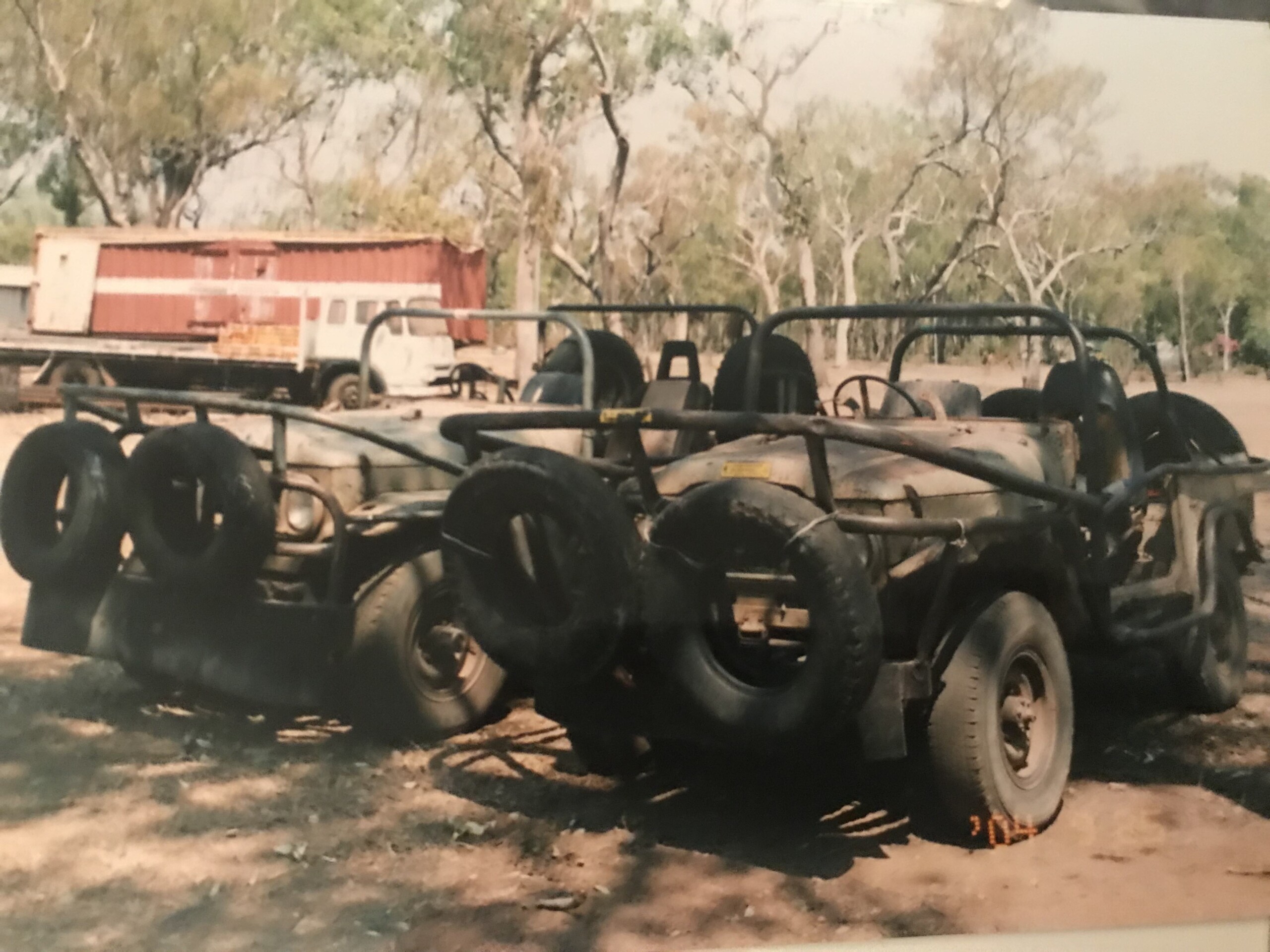 Flat tyres were common on the rough terrain, and we always carried multiple spares. But in this case, I had to change the tyre with a wall of flames moving toward us – it was getting hotter and hotter. I got it done in minutes, and we escaped.